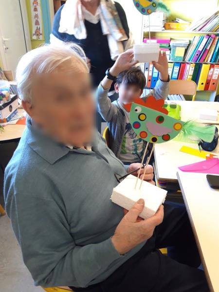Vendredi, les résidents ont participé à un atelier créatif en compagnie des élèves de la classe de CP de Mme Piau.