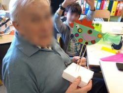 Ensemble, ils ont réalisé des poules en papier. Les enfants ont apporté leur aide technique aux aînés, en les guidant dans les étapes de découpage et de collage. De leur côté, les résidents ont échangé avec les enfants, valorisant leur travail et leur implication. Ils ont également su les apaiser en dédramatisant certaines situations.