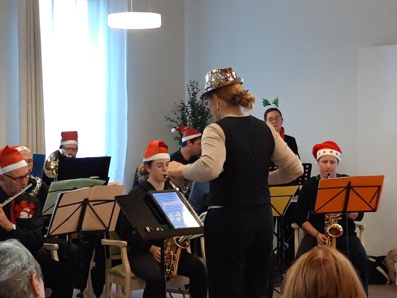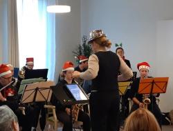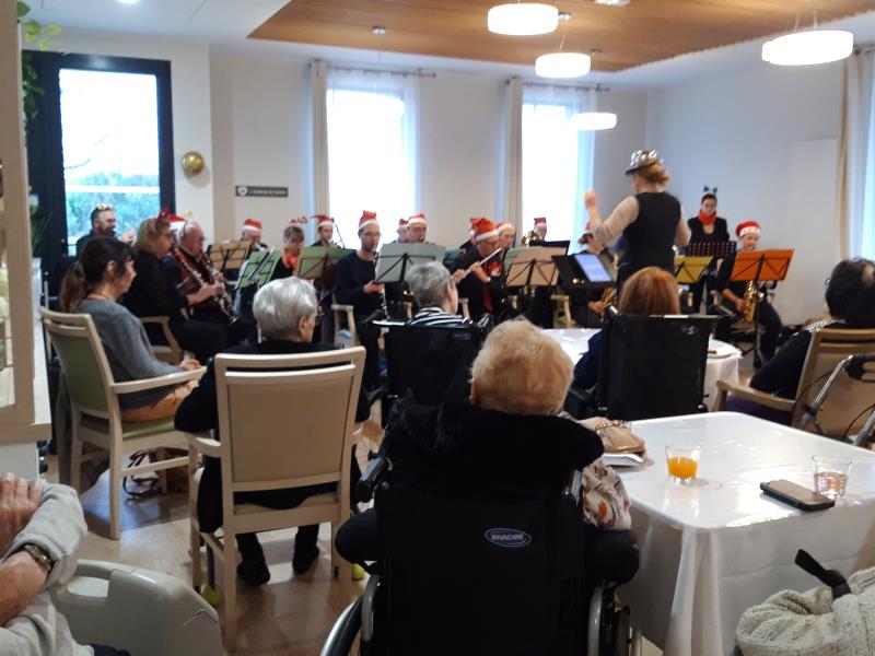 Le samedi 6 décembre, une vingtaine de musiciens du groupe Harmonie de Fonsorbes sont venus offrir un concert à la résidence Le Sorbier. Défilant un à un devant un public de mélomanes émerveillés, ils ont pris place derrière leurs pupitres et saisi leurs instruments, prêts à partager leur passion.