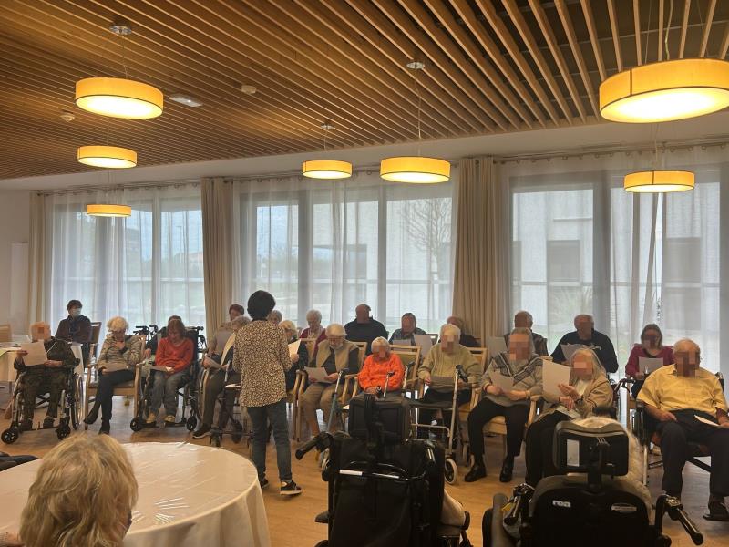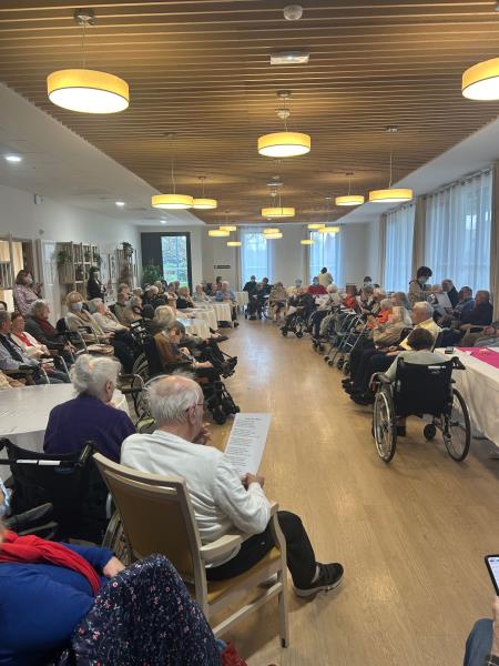 Le 14 janvier, à l’occasion de la fête de la galette, la chorale de la résidence, composée de 25 personnes, a chanté devant les résidents et les familles avec beaucoup d’émotion. M. Eychenne, arrivé récemment, a ouvert le concert en jouant plusieurs morceaux à l’harmonica. Cela faisait des années qu’il n’avait pas joué : encouragé par les résidents qui l’ont accompagné en chanson, il était très fier de s’être lancé dans l’aventure. Les choristes ont ensuite offert une heure de spectacle, pour le plus grand plaisir du public.